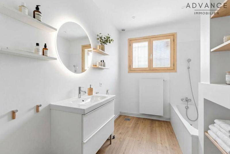L’organisation intérieure propose de vastes volumes à réinventer intégralement selon vos besoins. Actuellement configurée pour offrir de beaux espaces de vie, la maison nécessite des travaux de rénovation qui permettront de révéler tout son potentiel. La disposition actuelle est particulièrement flexible, permettant d’envisager soit une grande demeure familiale spacieuse, soit une division intelligente en deux appartements distincts d’environ 100 m² chacun. L’exposition et la structure des pièces assurent une luminosité naturelle constante sur l’ensemble des niveaux.