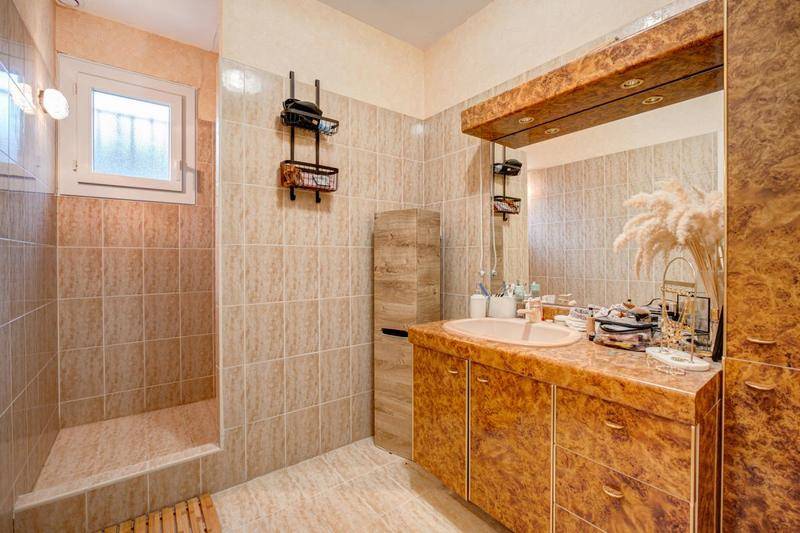 À l’étage, l’espace nuit se compose de trois chambres, accompagnées d’une grande salle de bain et de deux salles d’eau, ainsi que de plusieurs sanitaires, parfaitement adaptés à la vie familiale.