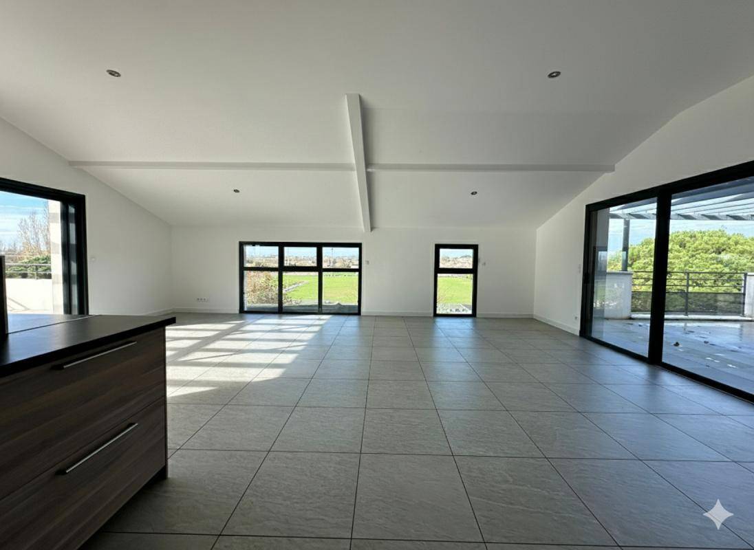 Avec une surface habitable de 115 m², ce bien offre une vaste pièce de vie baignée de lumière grâce à ses larges baies vitrées, donnant sur deux terrasses extérieures qui prolongent naturellement l’espace de vie.