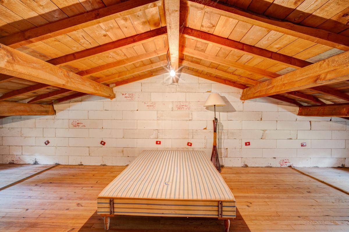 La pièce de vie, lumineuse et chaleureuse, s’ouvre sur une grande terrasse exposée plein sud. Le salon avec cheminée renforce le charme de cette maison, tandis qu’une mezzanine surplombe le séjour, idéale pour un bureau, un coin détente ou du rangement supplémentaire.