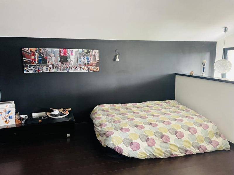 Une mezzanine complète l’ensemble, offrant un espace supplémentaire pouvant servir de bureau, coin lecture ou salle de jeux.