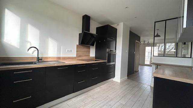 L’appartement, entièrement traversant et lumineux, dispose d’une vaste pièce de vie ouvrant sur un balcon d’environ 3,5 m², parfait pour profiter d’un espace extérieur. Vous serez séduit par la cuisine ouverte au design contemporain, aménagée avec des matériaux de qualité et dotée d’une verrière atelier, qui confère un cachet moderne à l’ensemble.