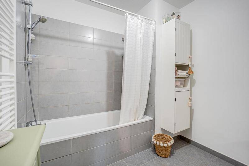 Cette résidence très bien entretenue dispose d’espaces verts, d’un local vélo et d’une salle de sport.