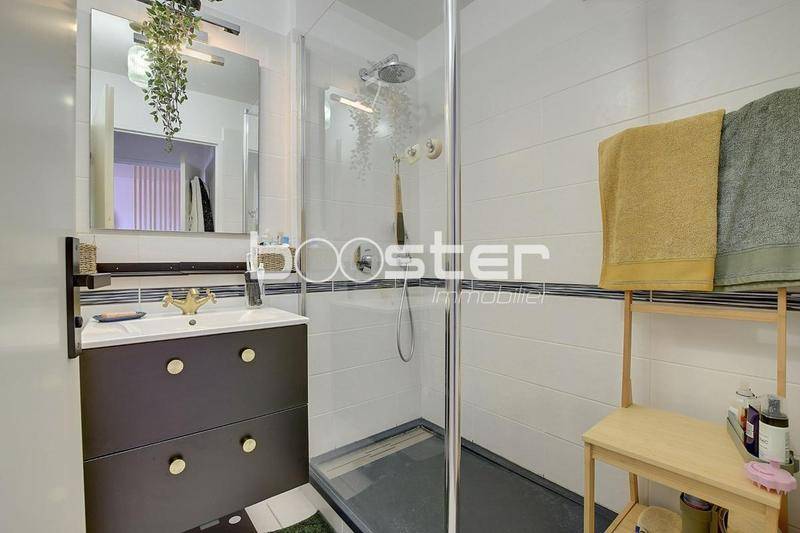 Le coin nuit propose une chambre confortable avec dressing intégré, parfaitement séparée du séjour pour garantir votre tranquillité. Une belle salle d’eau moderne accompagne le tout, ainsi que des toilettes indépendants, pour plus de confort au quotidien.