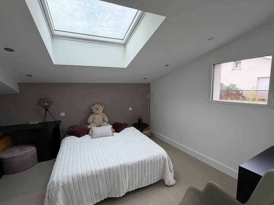 À l’étage, vous découvrirez deux chambres supplémentaires, une grande salle de bain ainsi qu’un second WC, parfait pour accueillir famille ou amis en toute sérénité. Les volumes et la qualité des prestations offrent une atmosphère chaleureuse et fonctionnelle.
