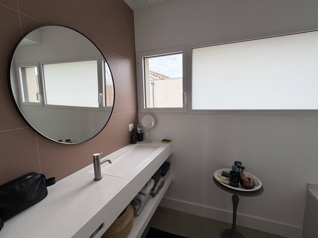 Côté extérieur, la maison bénéficie d’un agréable jardin de 140 m² exposé sud, sans vis-à-vis, agrémenté d’une piscine privée. Cette configuration promet de belles journées en toute saison, en famille ou entre amis. L’installation d’une climatisation réversible assure un confort optimal été comme hiver.