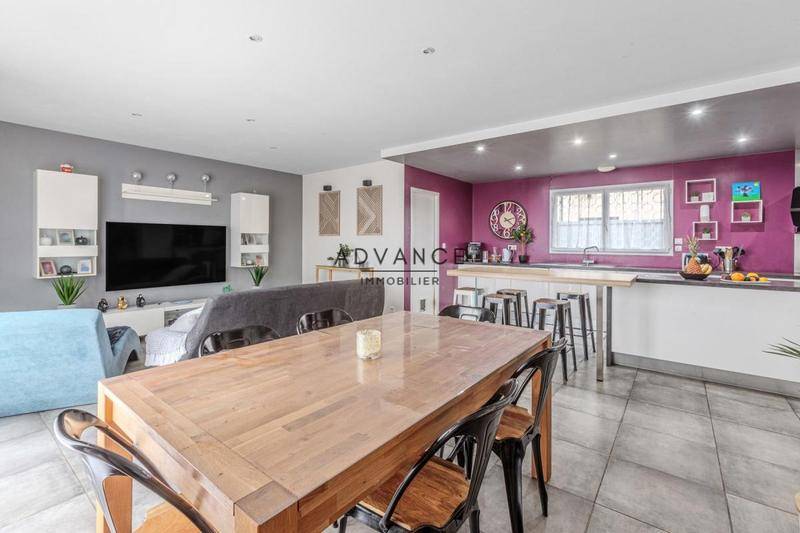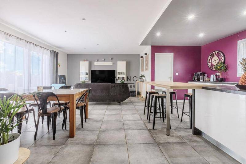 Vaste pièce de vie ultra-lumineuse avec cuisine ouverte, idéale pour recevoir.