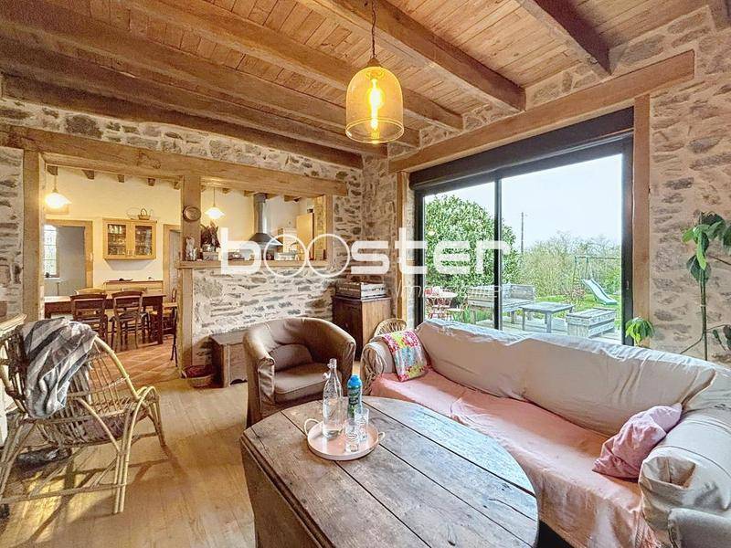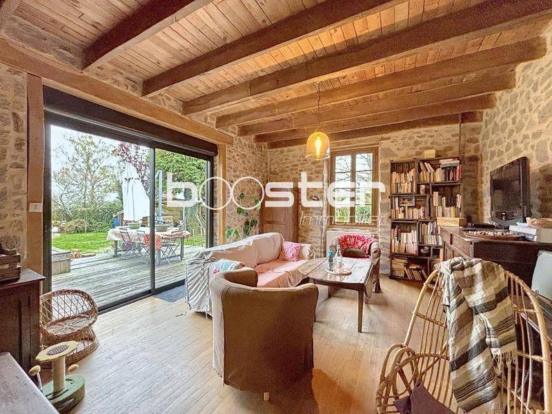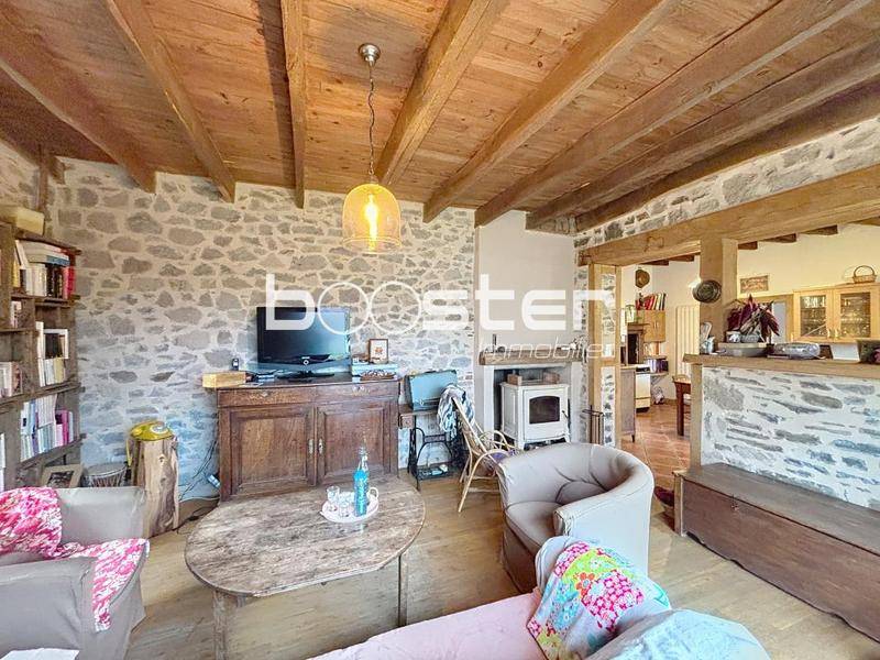 Au cœur de la campagne, dans un environnement calme, Booster vous invite à venir découvrir cette charmante maison en pierres et rénovée. Elle comprend une entrée, une cuisine équipée ouverte sur une salle à manger, ainsi qu’un lumineux séjour doté d’un poêle à bois et d’un accès direct à la terrasse, parfaite pour profiter des beaux jours.
