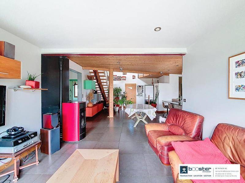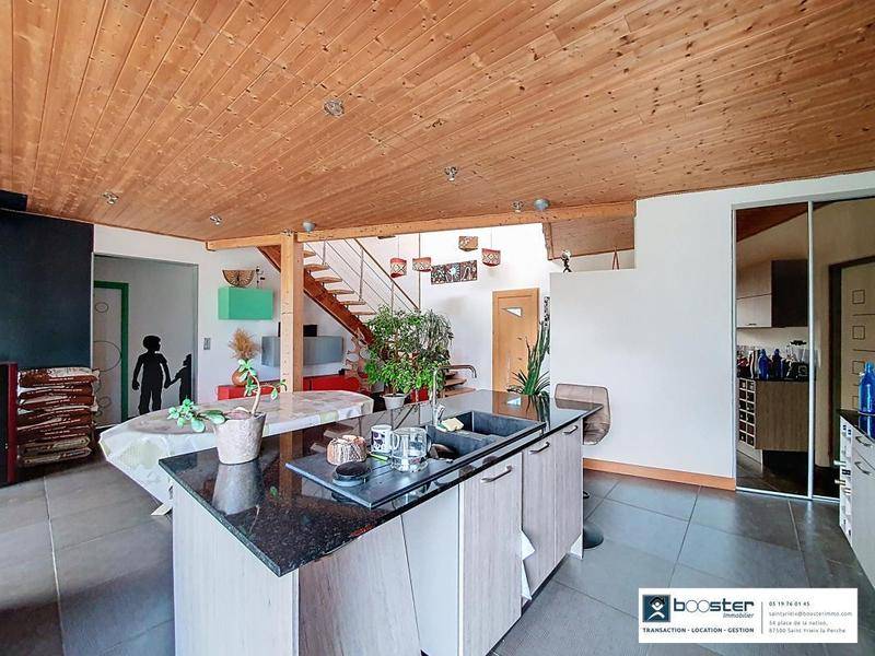 Booster vous présente en exclusivité cette superbe maison d’architecte en bois, idéalement située à seulement 3 minutes du centre historique de Saint-Yrieix-la-Perche et de ses commerces. Implantée dans un environnement calme, elle offre une magnifique vue sur la nature environnante et séduit par sa conception écologique, son orientation optimale et un chauffage au sol alimenté par un poêle à granulés Hydro, avec une consommation de 600 €/an!