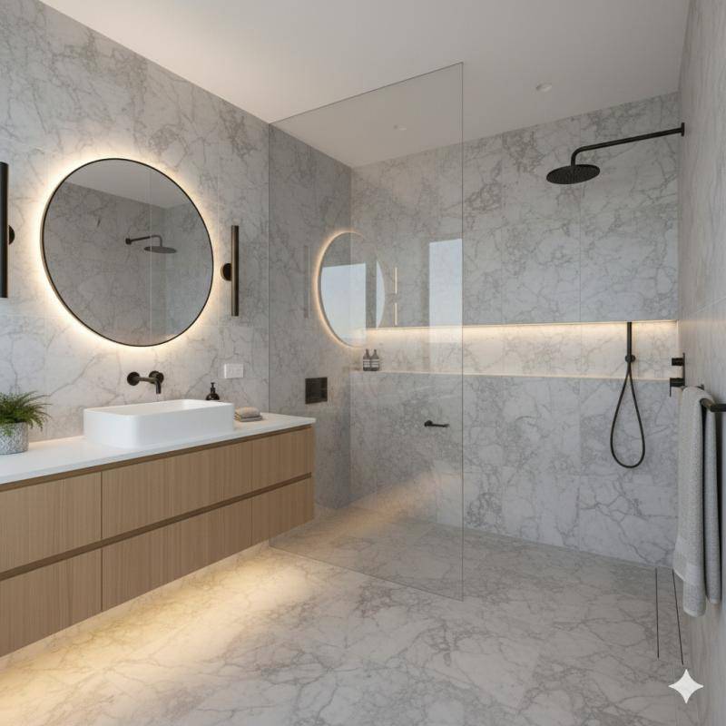 Aucune perte d’espace et de beaux matériaux vous attendent dans ce charmant appartement.
