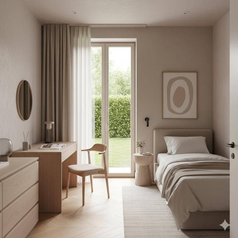 L’espace nuit propose deux chambres confortables aux surfaces équilibrées, parfaitement adaptées à une vie de couple, une jeune famille ou un espace bureau. Une salle de bains moderne ainsi que des rangements complètent l’ensemble.