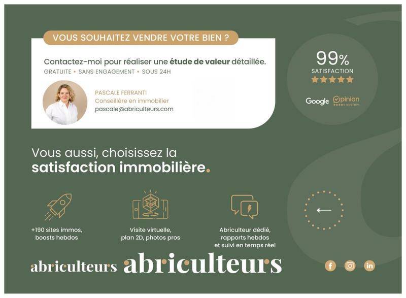 Annonce rédigée sous la responsabilité éditoriale de Mme Pascale FERRANTI , agent commercial (EI), immatriculé au RSAC de PARIS sous le n° 900 781 139, sans détention de fonds, agissant pour le compte de la SARL Abriculteurs immobilier, au capital de 5 000 €, immatriculée sous le SIREN n° 837 704 584, titulaire de la carte professionnelle n° CPI 7501 2018 000 025 842 délivrée par la CCI de Paris Île-de-France, dont le représentant légal est M. Adrien Piot, ayant son siège social au 12 rue des Halles, 75001 Paris.