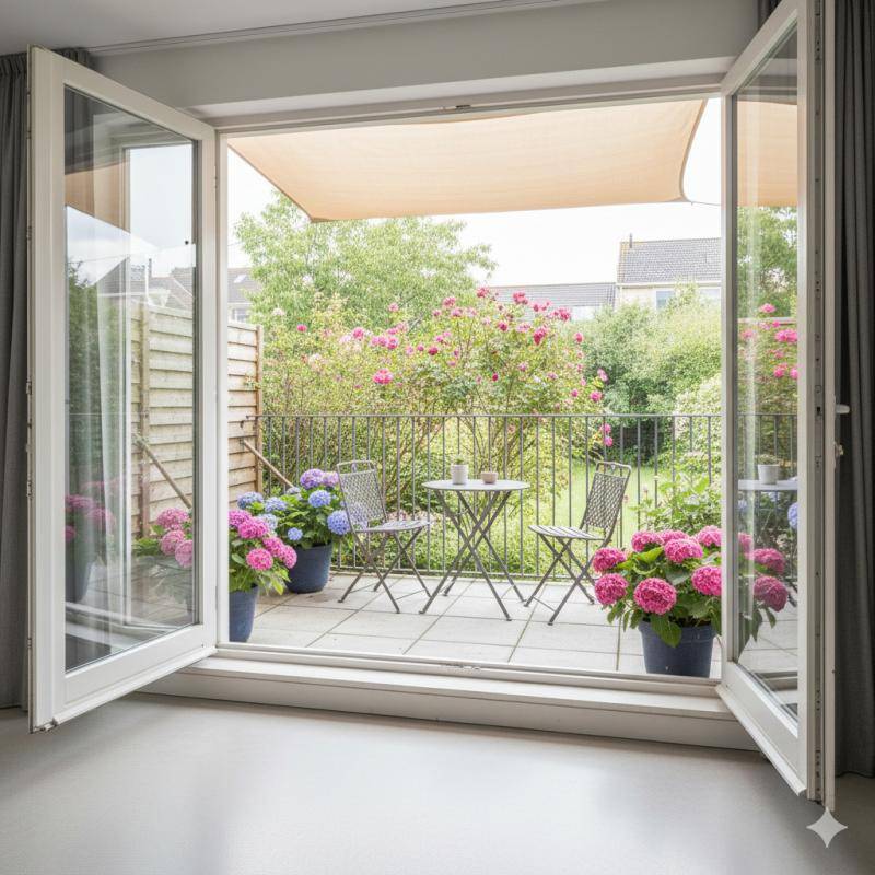 Grand balcon extérieur, donnant sur l’arrière de la résidence, au calme