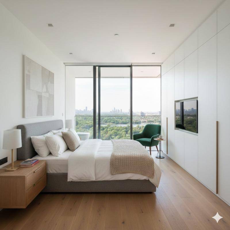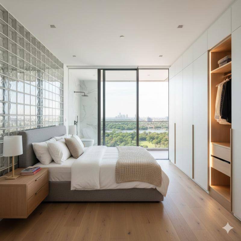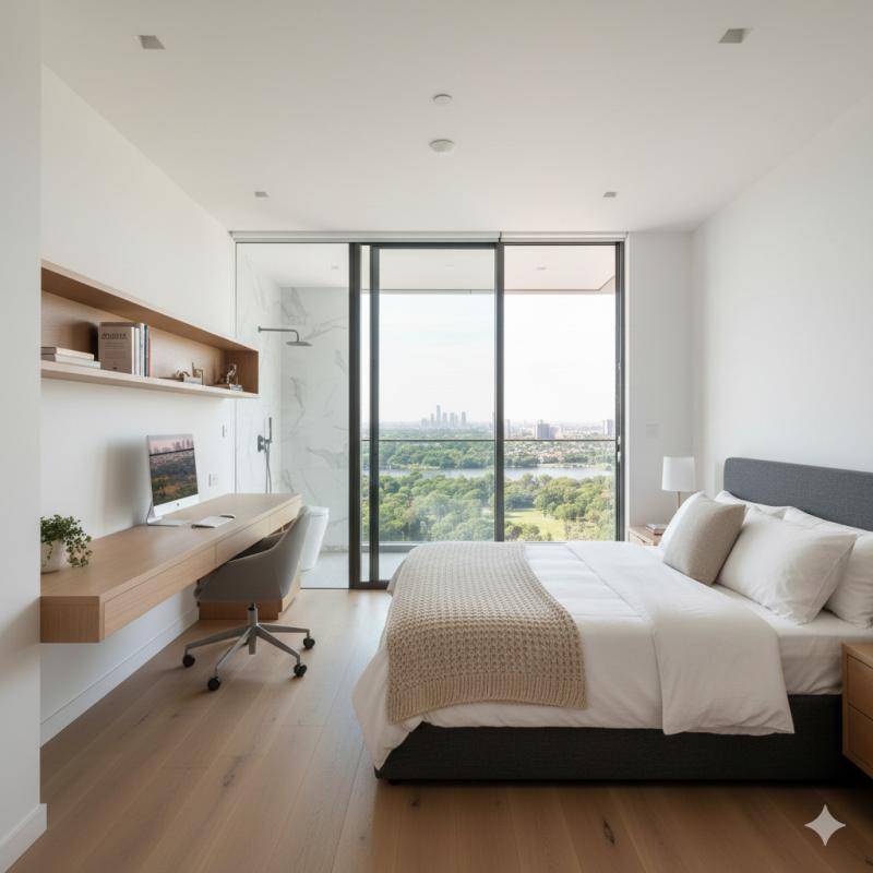 Aucune perte d’espace et de beaux matériaux vous attendent dans ce charmant appartement.