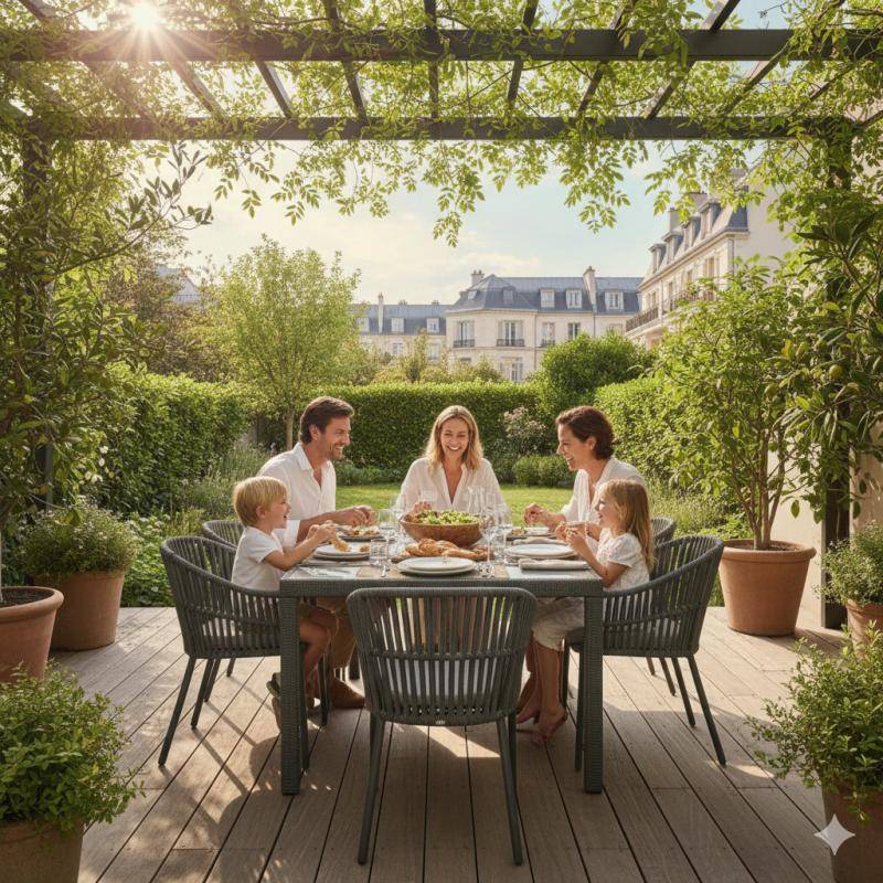 Avec près de 80 m² d’espaces extérieurs, cet appartement se vit comme une maison : déjeuner au soleil, soirées d’été, espace de jeux pour les enfants ou coin détente… chacun y trouvera son rythme.