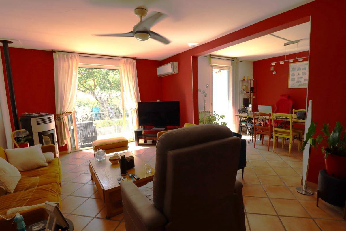 La maison bénéficie de prestations de qualité : climatisation réversible au rez-de-chaussée, gainable à l’étage, poêle à granulés, panneaux solaires, volets roulants électriques, moustiquaires, escalier en bois sur mesure et chaudière à gaz.