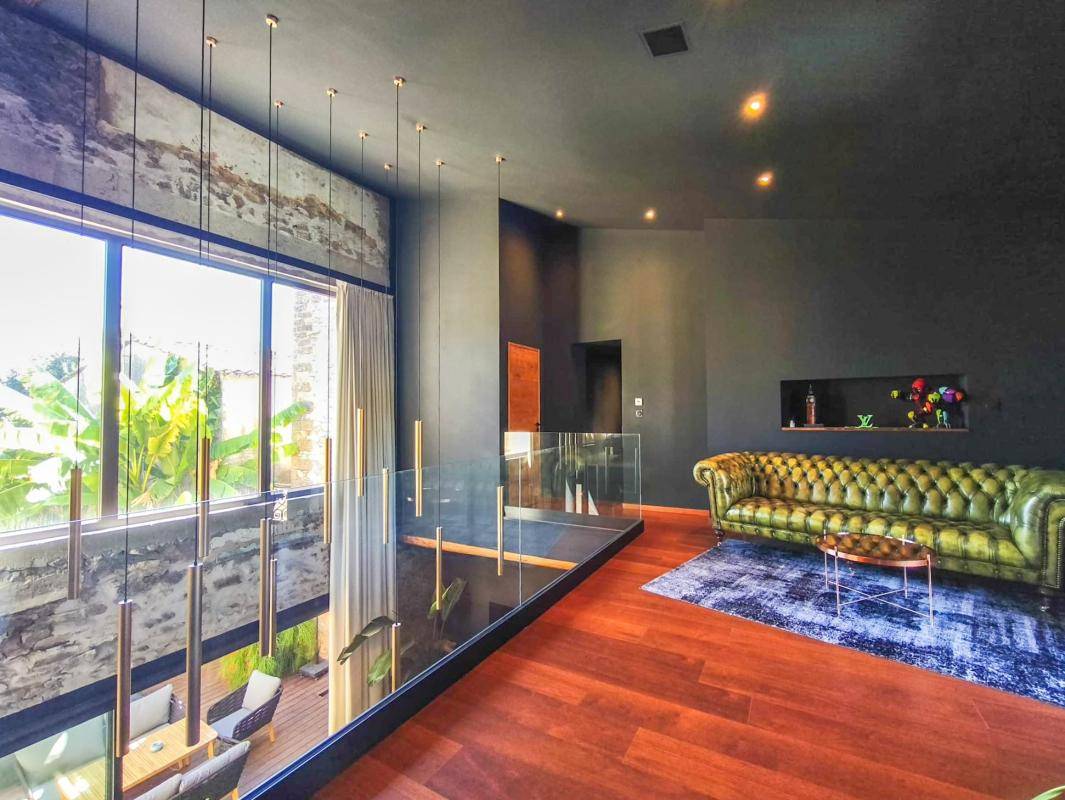 Matériaux nobles tels que poutres et pierres apparentes, escalier en pierre, parquet massif en bois exotique, qui mettent en exergue l’authenticité et l’émotion unique que suscite ce lieu, sans compter la magnifique cheminée suspendue qui apporte du caractère à la pièce de vie, ouverte sur un oasis tropical exposé plein sud en plein cœur d’un village atypique de la métropole montpelliéraine.
