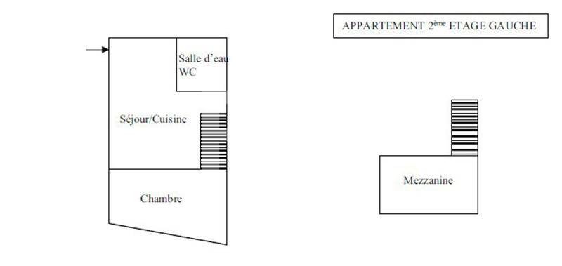 Sa superficie de 41,85 m2 se compose d’une pièce de vie donnant côté cour de plus de 26 m2, d’une chambre de 14 m2 donnant côté rue et d’une salle d’eau avec WC de 2.65 m2.