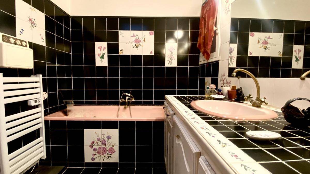 La cuisine équipée, agrémentée d’un four à pain et d’un insert, offre un véritable caractère à la pièce. Elle communique directement avec un jardin d’hiver baigné de lumière, idéal comme coin lecture ou lieu de détente.