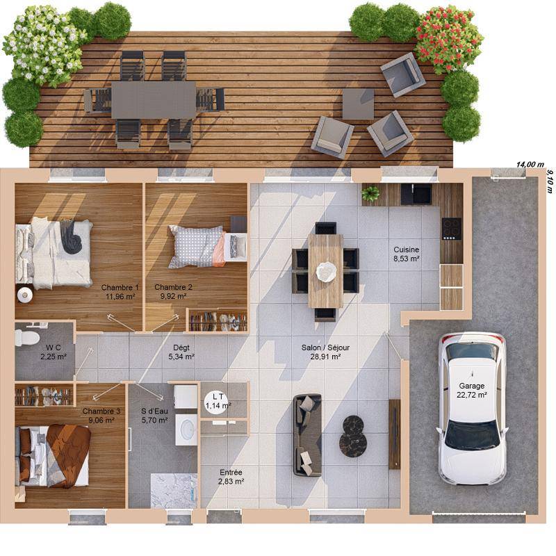 Maison neuve à construire LAURIER_3CH_91_V1 BELLE MAISON DE 3 CHAMBRES…