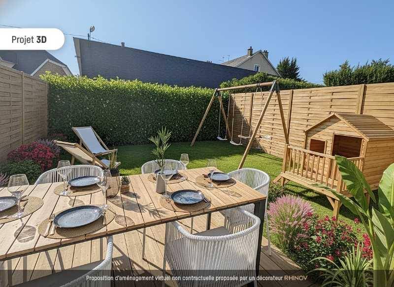 Au Rez-de-chaussée : une entrée avec grand placard, une chambre, WC indépendant, cuisine ouverte sur un vaste séjour lumineux avec accès direct à la terrasse et au jardin.