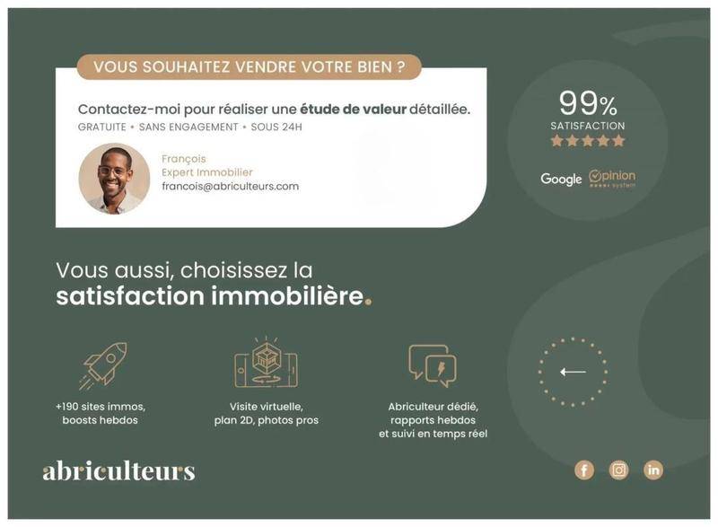 Annonce rédigée sous la responsabilité éditoriale de M. François LAGABRIELLE, agent commercial (EI), immatriculé au RSAC de Nantes sous le n° 2023AC00268, sans détention de fonds, agissant pour le compte de la SARL Abriculteurs immobilier, au capital de 5 000 €, immatriculée sous le SIREN n° 837 704 584, titulaire de la carte professionnelle n° CPI 7501 2018 000 025 842 délivrée par la CCI de Paris Île-de-France, dont le représentant légal est M. Adrien Piot.