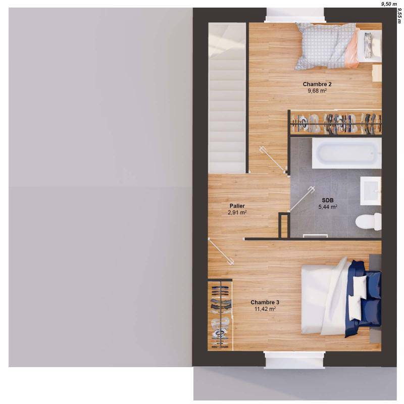 Maison neuve à construire MAGNOLIA_2CH_61_V1 Terrain en lotissement situé à…