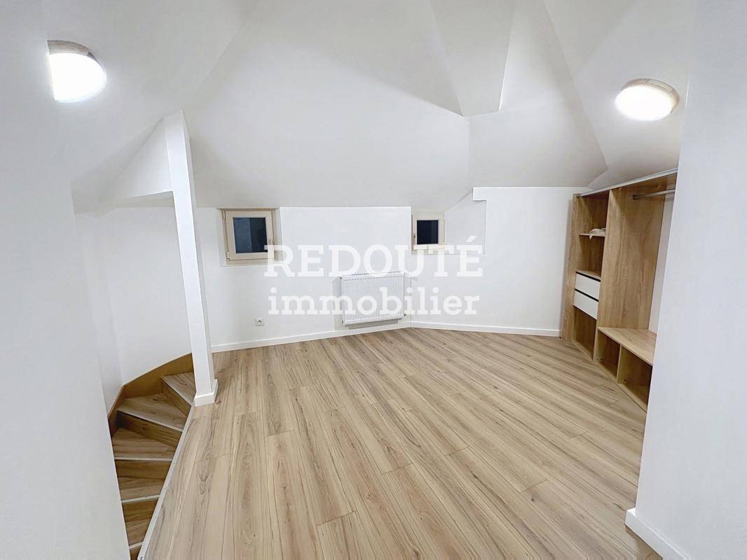 Au premier étage : une chambre donnant accès à un bureau au deuxième étage, une deuxième chambre, une salle de bain et un wc.