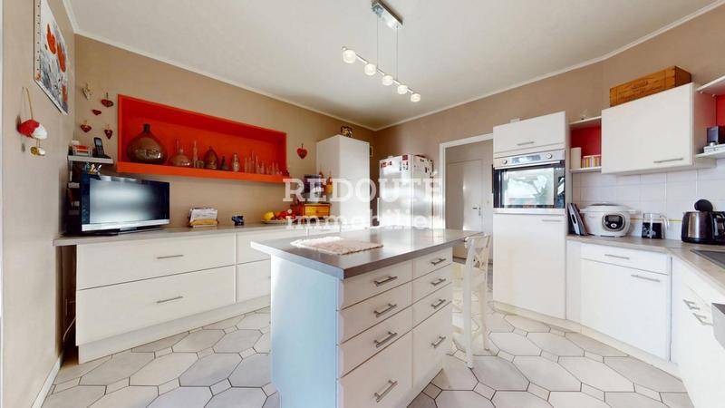Au rez-de-chaussée, sas d’entrée, couloir, cuisine aménagée et équipée ouverte sur une très grande et belle véranda chauffée (poêle à granulés), elle-même communiquant avec un beau salon avec cheminée à insert, buanderie, salle de bain et WC indépendant. Accès à une très grande cave.
