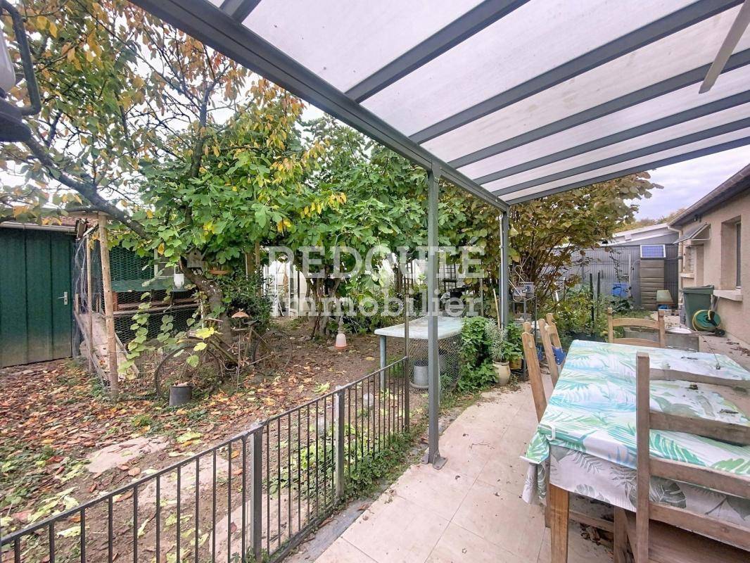 Jardin arboré à l’arrière avec terrasse et pergola, parfait pour les soirées d’été