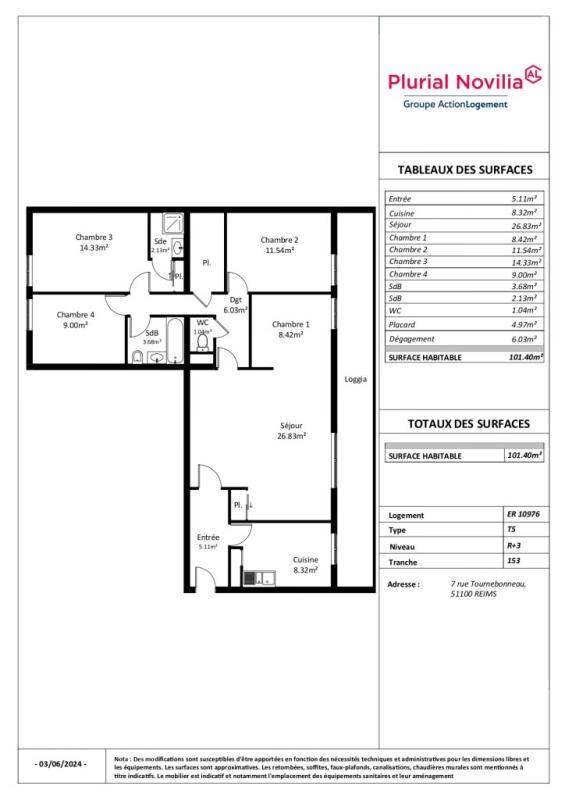 9 rue Tournebonneau a Reims, appartement T5 situé au 3ème étage d’une copropriété de 41 logements avec ascenseur et comprenant : entrée avec placard, cuisine, salon-séjour, 3 chambres dont 1 avec salle de douche, cagibi, salle de bain, wc, balcon, cave. Chauffage collectif. Taxe foncière 2025 : 1614 euros.