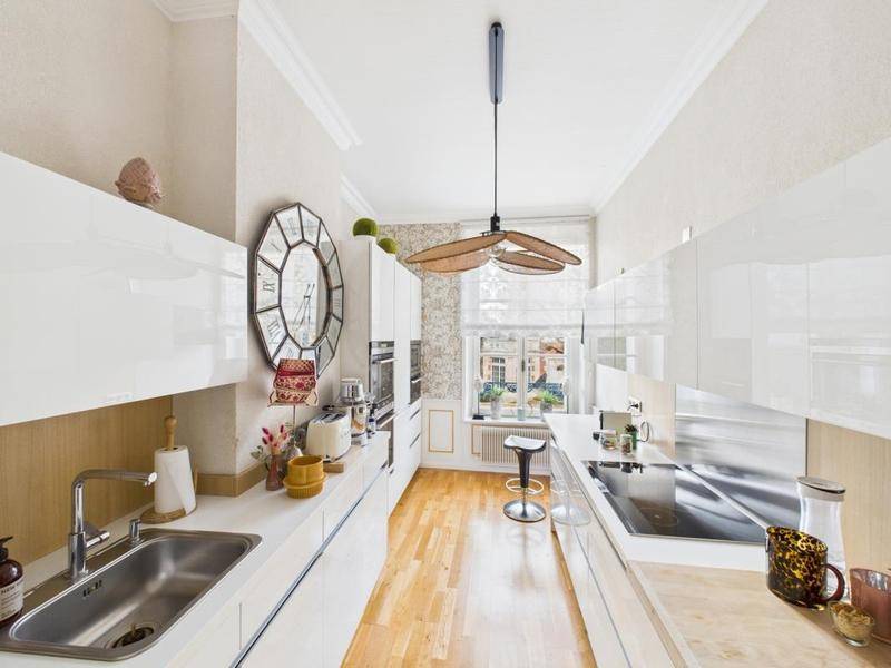 D’une surface généreuse de 133 m², cet appartement offre un cadre de vie élégant, chaleureux et parfaitement agencé, mêlant cachet de l’ancien et design contemporain.