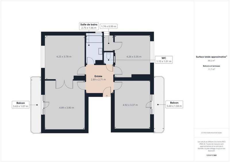 L’entrée dessert un séjour lumineux avec accès au balcon, une cuisine indépendante avec cellier, deux chambres confortables dont une avec accès extérieur, une salle de bains rénovée ainsi qu’un WC séparé.