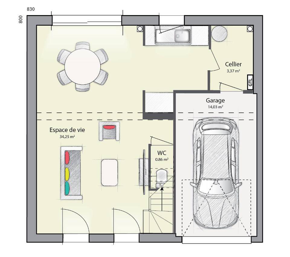 Exemple de projet maison de 89 m2 loi Carrez + garage