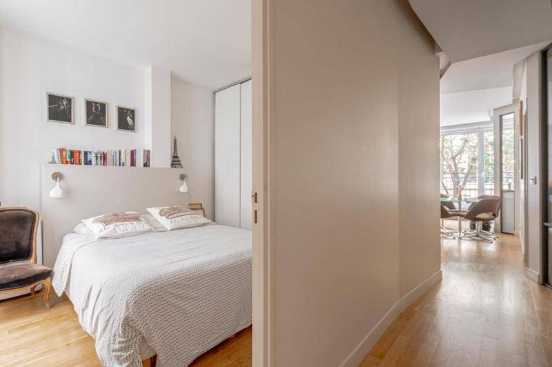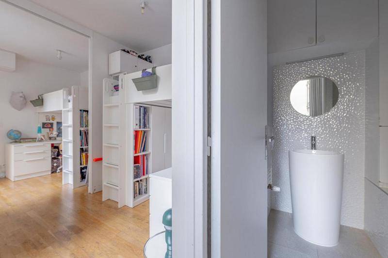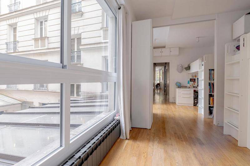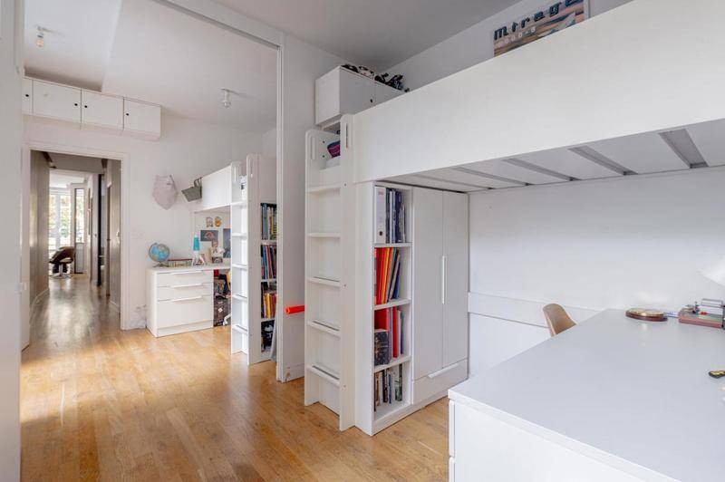 Côté nuit, trois chambres au calme sur cour, dont deux chambres d’enfants modulables grâce à une porte coulissante.