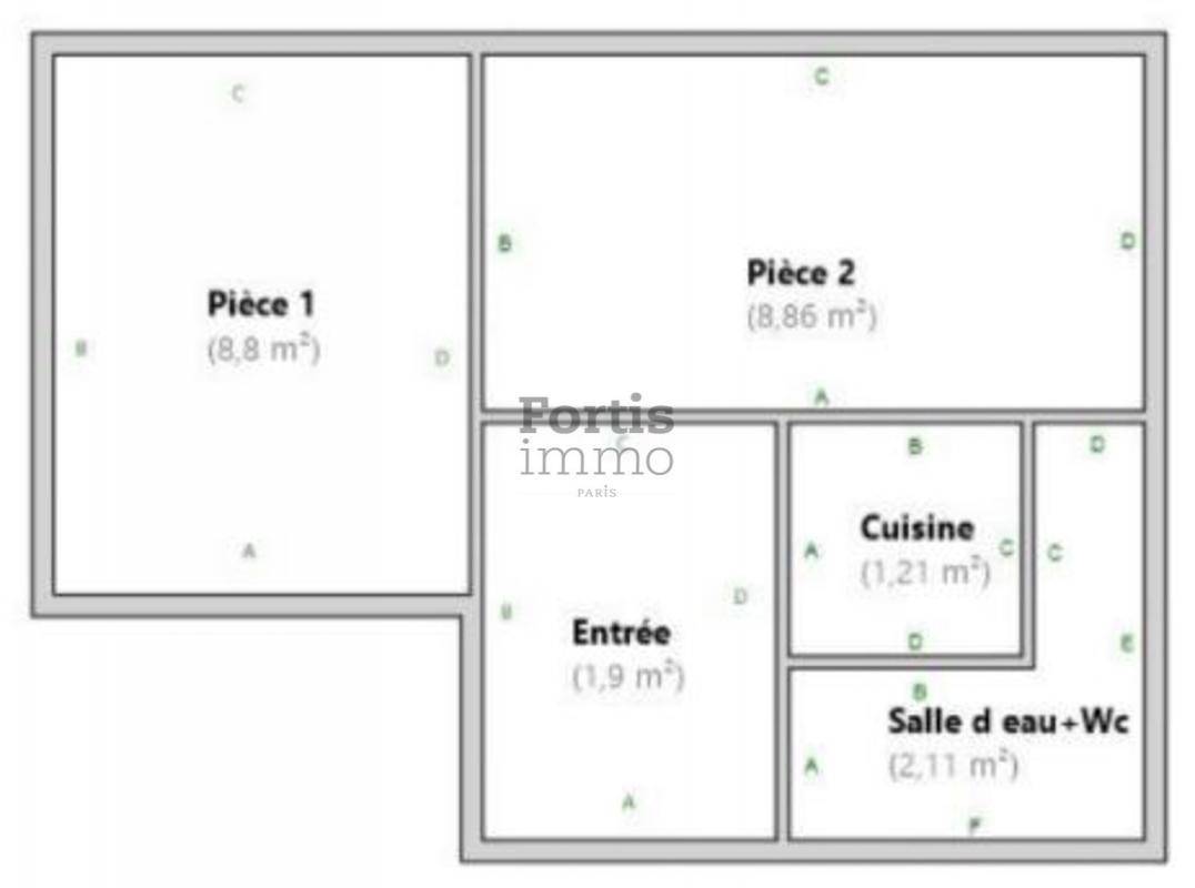 Vente 2 pièces d’une superficie de 22,86 m² Carrez, au 5ème étage sur cour, très calme, lumineux et sans vis-à-vis.