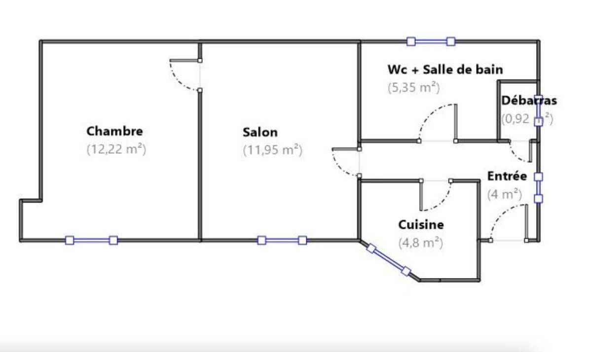 Le bien se compose d’un séjour accueillant et lumineux avec une belle hauteur sous plafond et une double exposition est/ouest, d’une cuisine séparée, d’une grande chambre avec rangements ainsi que d’une salle de bains avec baignoire et WC.
