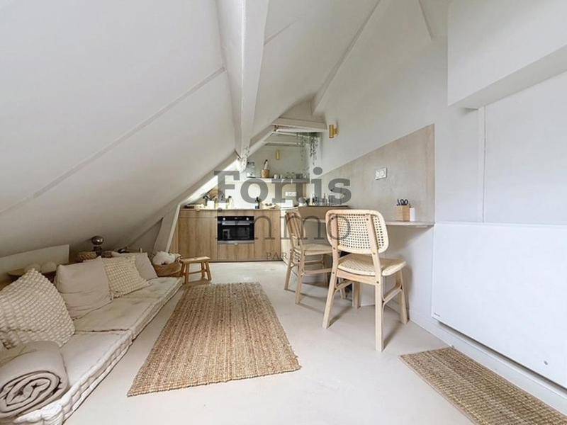 Espace optimisé et lumineux grâce à deux velux, avec cuisine aménagée et équipée.