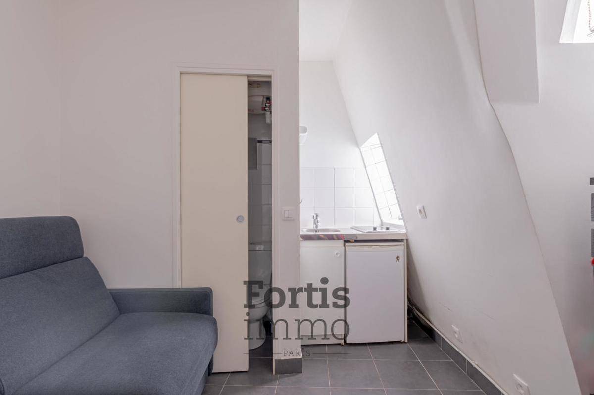Découvrez cette studette de 9 ㎡ bien agencé au 6e étage et dernier étage avec ascenseur d’un bel immeuble bien entretenu datant de 1880.