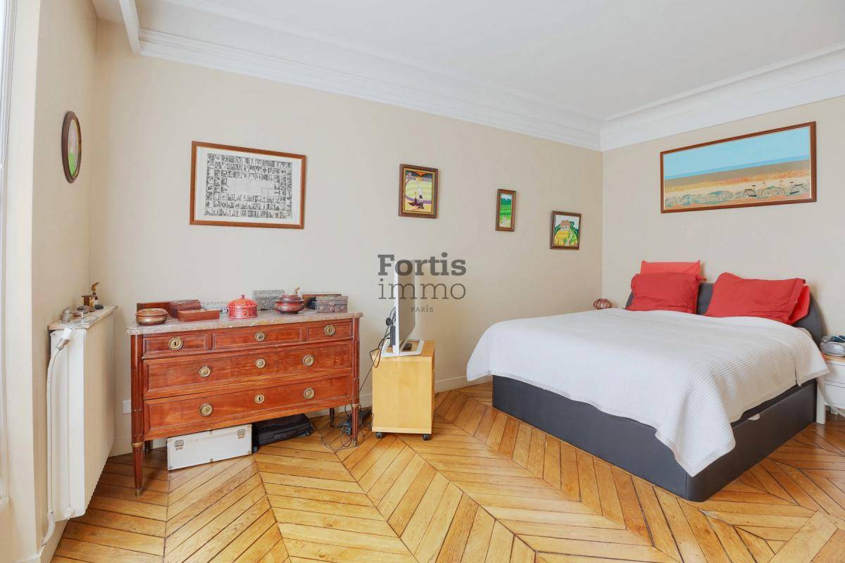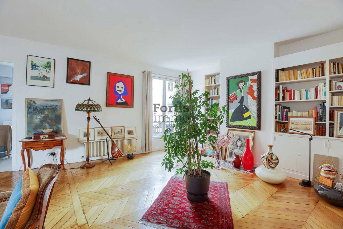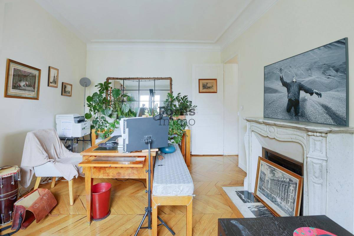 Appartement traversant, lumineux, calme et profitant du charme de l’ancien avec de beaux volumes (2.80 m de HSP) , du parquet point de Hongrie et deux cheminées.