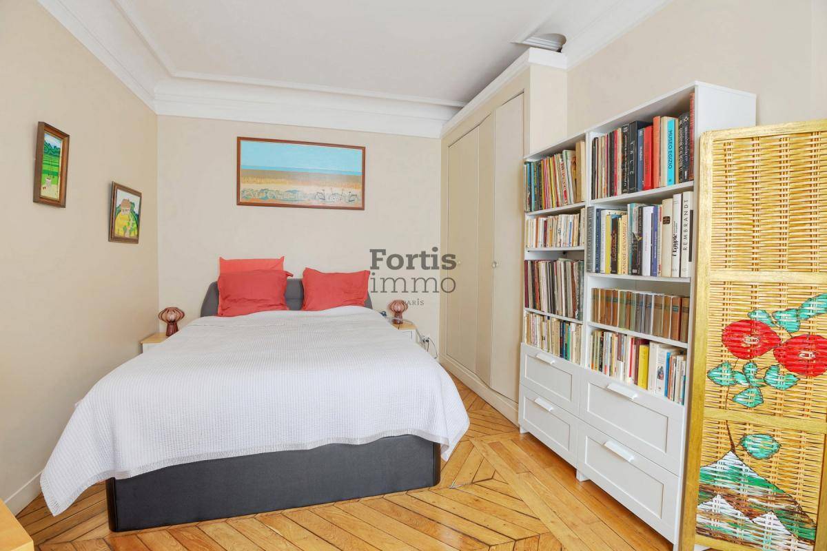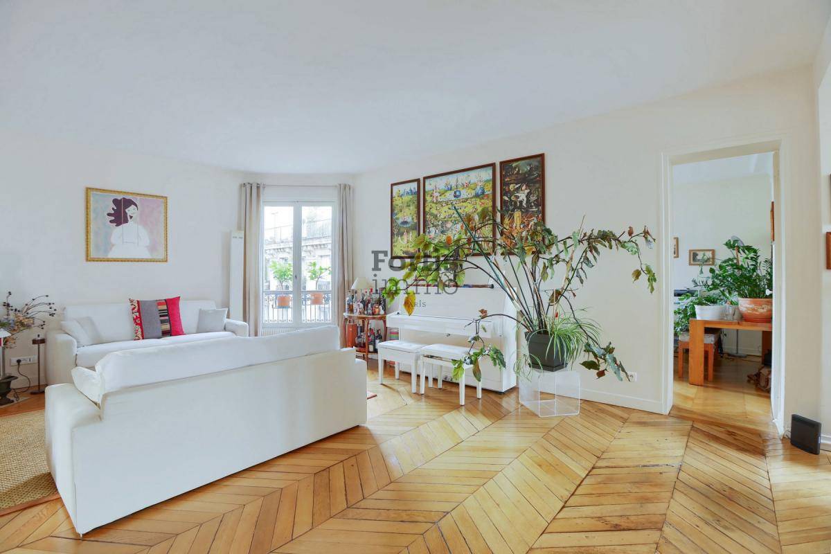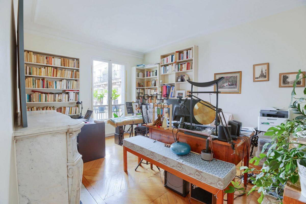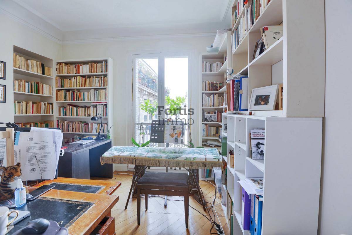 Appartement traversant, lumineux, calme et profitant du charme de l’ancien avec de beaux volumes (2.80 m de HSP) , du parquet point de Hongrie et deux cheminées.