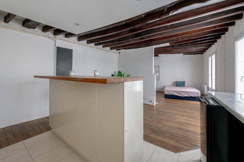 Poutres apparentes, parquet en bon état. Chauffage individuel électrique. DPE D.