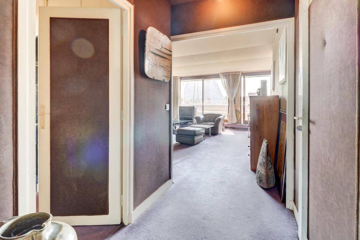 Traversant, calme et lumineux, l’appartement bénéficie d’une vue dégagée sur la Tour Eiffel depuis son balcon plein sud de 8,5 m². Il se compose de :