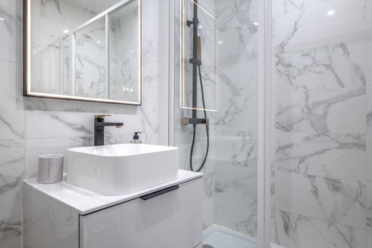 La chambre, élégante et dotée de vastes rangements avec une belle salle d’eau, comprenant un espace buanderie et des toilettes.