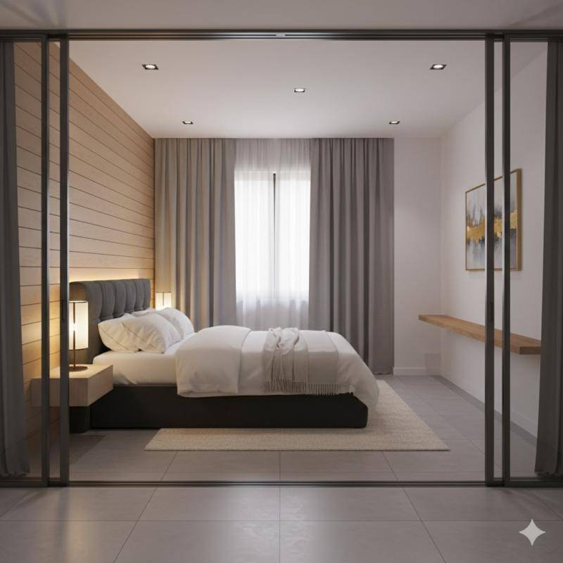 Appartement haut de gamme avec parquet massif, domotique et stores motorisés.