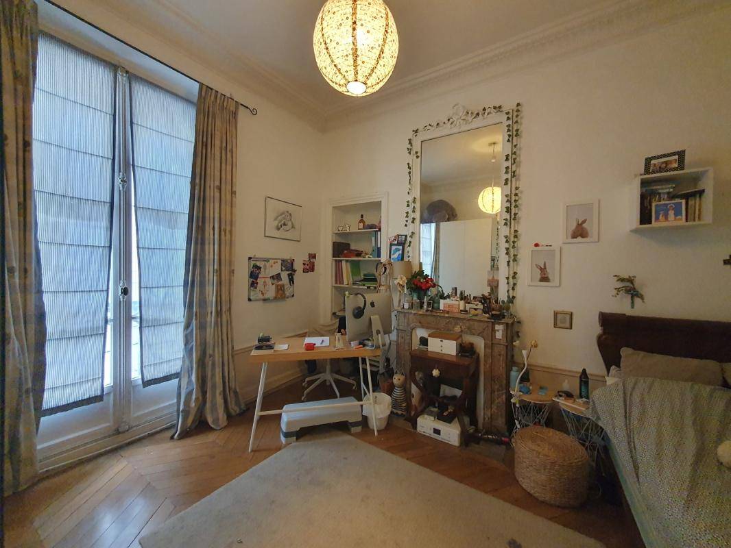 Idéalement situé à l’étage noble (2e) d’un immeuble Haussmannien de 2ème classe (avec escalier de service menant aux chambres de bonnes), avec ascenseur, sa hauteur sous plafond, ses nombreuses moulures et cheminées ouvragées d’époque et son balcon filant au niveau des pièces de vie lui permettent de perpétrer l’héritage Haussmannien.