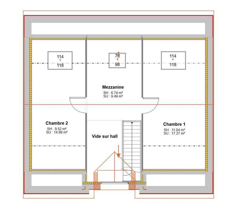 Vous disposerez d’une cuisine ouverte, d’une grande pièce de vie lumineuse avec une grande baie vitrée donnant sur votre jardin ainsi qu’un cellier et d’une salle de bain. En partie nuit : 2 belles chambres ainsi qu’une mezzanine donnant sur un beau vide su hall.