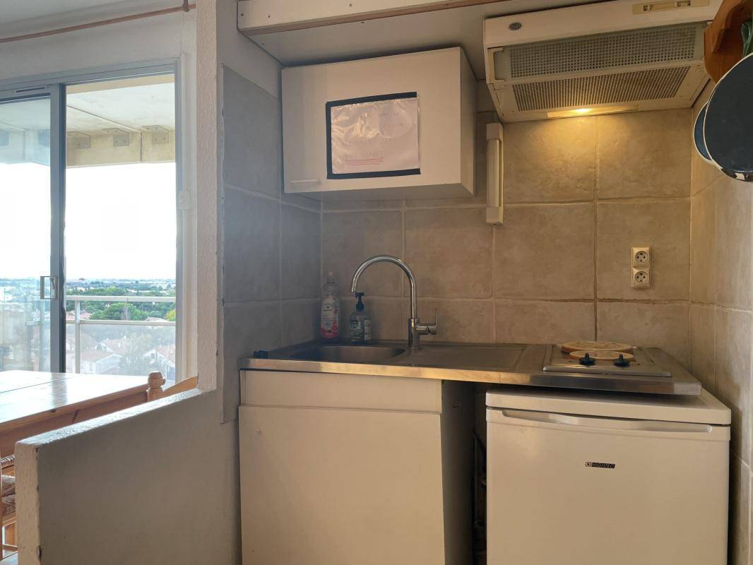 Au 8? étage avec ascenseur, appartement T1 meublé de 20,70 m² situé sur le port de plaisance, bénéficiant d’une vue panoramique exceptionnelle à 270° sur la mer et les montagnes, avec exposition sud-ouest.