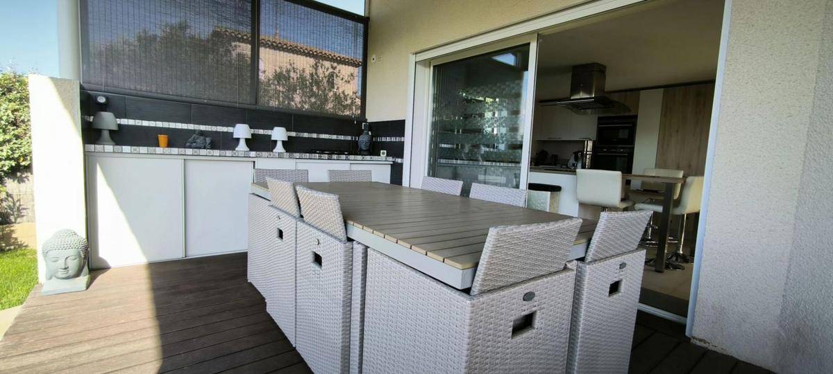 PROCHE DE PERPIGNAN – MAISON 6 PIÈCES AVEC TERRASSE En vente : localisée à 10 km de la mer Méditerranée et à moins de 31 km de l’Espagne, nous sommes ravis de vous présenter cette maison de 6 pièces de 183 m² et de 749 m² de terrain à CLAIRA (66530). Elle est composée de quatre chambres dont une suite parentale, d’une cuisine aménagée équipée et de deux salles d’eau et une salle de bain. Idéal pour avoir un peu d’air frais ou profiter des belles journées, cette maison bénéficie de deux terrasses et d’un jardin. Vous profiterez d’une cuisine d’été, d’une piscine et d’un jacuzzi sans vis à vis. Quatre places de parking sont prévues pour stationner votre véhicule (camping car possible) Il y a l’École Maternelle « les Carioulettes » et l’École Élémentaire Yves Ducès à moins de 10 minutes à pied. Côté transports en commun, on trouve les gares Rivesaltes, Perpignan et Salses-le-Château à moins de 10 minutes en voiture. L’autoroute A9 et l’aéroport Perpignan-Rivesaltes sont accessibles à moins de 7 km et Perpignan se situe à 8 km. Pour vos loisirs, vous pourrez compter sur un tennis à proximité. Il y a aussi des restaurants, des commerces, une boulangerie, un bureau de poste et une épicerie. Les informations sur les risques auxquels ce bien est exposé sont disponibles sur le site Géorisques : www.georisques.gouv.fr. Contactez notre agence immobilière KW OXYGÈNE pour obtenir plus de renseignements sur cette maison à vendre à CLAIRA. Laurent GORIN (Email supprimé) 06*43*54*48*71 RSAC 849071949