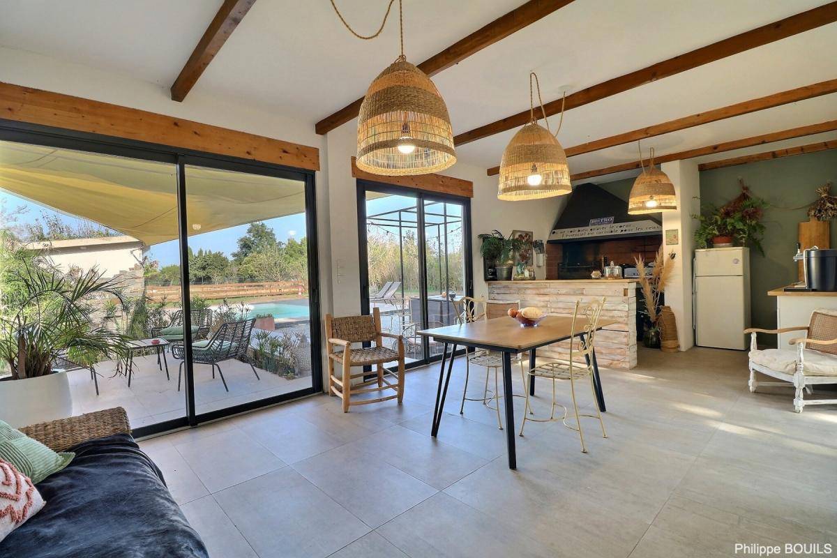 Pour plus d’informations ou pour une visite rapide contactez Philippe 06*18*33*87*26 Imaginez-vous dans cette propriété de plain pied alliant confort et fonctionnalité, en plein coeur de la nature. Dès que vous franchissez la porte, vous découvrez une vaste pièce de vie baignée de lumière, où la cuisine ouverte se fond harmonieusement avec l’espace salon-séjour. Ici, vous pouvez déjà imaginer vos moments en famille, partageant des repas autour de l’îlot central ou profitant de soirées chaleureuses autour de la table. Depuis le salon, vous accédez à la cuisine d’été, qui s’ouvre d’un côté sur l’espace extérieur et la piscine, et de l’autre sur le boulodrome. Équipée d’un barbecue, cette pièce constitue un véritable lieu de vie supplémentaire, et sera l’endroit idéal pour créer de merveilleux souvenirs. L’espace nuit vous offre une suite parentale avec un accès direct à l’extérieur, ainsi que deux chambres disposant chacune d’une douche. Un dressing supplémentaire et un bureau viennent agrémenter votre capacité d’accueil. Quant à la piscine et sa plage attenante, elles deviennent rapidement le cœur de la maison durant les beaux jours, offrant ainsi un espace où chacun peut se détendre ou s’amuser à volonté. Le terrain de plus de 9 000 m² offre à la fois espace et intimité, permettant de profiter pleinement des extérieurs, que ce soit pour des barbecues en famille ou simplement pour se détendre au bord de l’eau. Imaginez les longues soirées d’été sur la terrasse, savourant la douceur de l’air dans cet espace paisible et généreux. Cette maison saura s’adapter à vos besoins, grâce à des espaces intelligemment conçus, permettant à chacun de trouver son équilibre. Que ce soit pour y vivre en famille, recevoir des proches ou des amis, elle offre un potentiel exceptionnel dans un cadre de vie paisible et agréable. Les informations sur les risques auxquels ce bien est exposé sont disponibles sur le site Géorisques : www.georisques.gouv.fr. Je me tiens à votre disposition pour vous faire visiter cette propriété. Si vous souhaitez découvrir d’autres biens, en ligne ou bientôt en ligne, n’hésitez pas à me contacter : Philippe BOUILS 06*18*33*87*26* (Email supprimé) RSAC Perpignan: 838726693 ou rendez-moi visite au Market Center Keller Williams Oxygène 1098 Avenue Eole Bâtiment le Pyrénéen Technosud 2 PERPIGNAN Les informations sur les risques auxquels ce bien est exposé sont disponibles sur le site georisques.gouv.fr